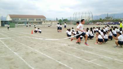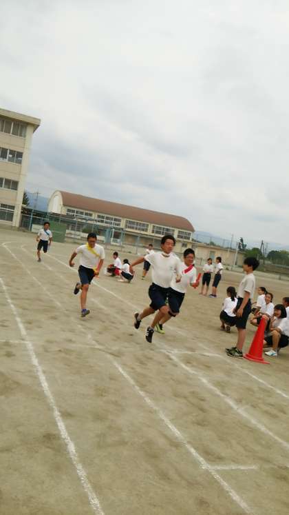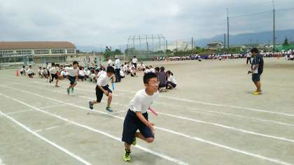 男子のブロック対抗リレーです。桃色ブロックが勝ちました。自然に『がんばれ~』と声援があがるところが素晴らしいです。