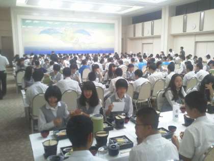 朝食後の出発まであまり時間がないため、制服に着替えて朝食をとっています。昨夜の夕食とは、また雰囲気が違って、大人に見えます。