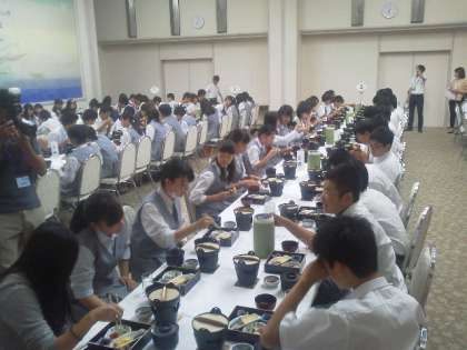 7時00分:予定時間通り、朝食がスタートしました。メニューは、『焼き魚、卵焼き、煮物、豆腐』など、純和風です。