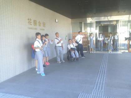 7時50分:班別自主行動開始。一番早い班が、谷先生のチェックを受け、携帯電話を借りて出発しました。今日の京都地方は、晴のち曇、最高気温28度です。暑い1日になりますが、体調に注意してしっかり行動することを期待しています。