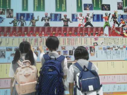 14時15分:東映太秦映画村にて1組6班に会いました。パディオスの2階で特撮ヒーローの年表を眺めている3人につられて、私もいつしか夢中になって昔を思い出していました。
