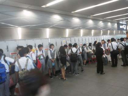 14時20分:京都駅八条口に続々と千代中生が帰って来ました。新幹線乗車まであと1時間です。