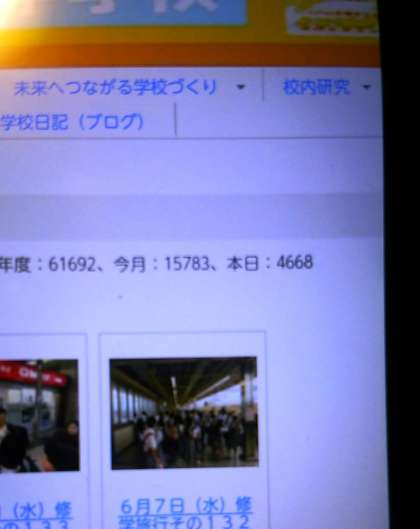 写真は、昨日の夜中の23時50分の千代中ホームページの画面です。「本日の閲覧数」が4668と5日(月)の3626、6日(火)の3861をさらに上回り、新記録更新です。