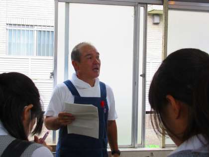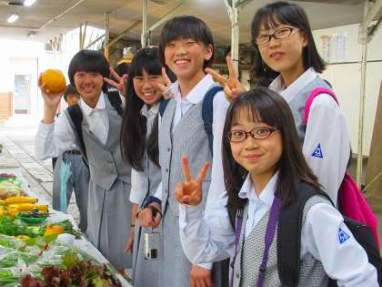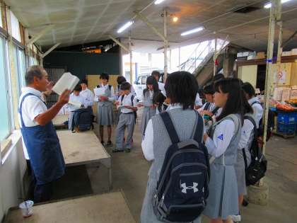 鎌倉市農協連即売所を訪れたグループです。鎌倉野菜についてお話しをうかがい、みずみずしい野菜を見せていただき、トマトの味見までさせていただきました。あまりに美味しかったので、お土産に野菜を買って帰る生徒もいました。