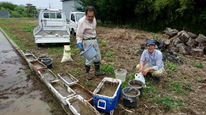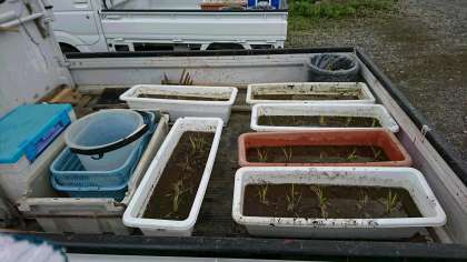 8日(木)に実施した「田植え体験」で余った苗を学校に持ち帰り、プランターで育てていたのですが、生育が良くなくて…と先週ホームページにアップしたところ、今朝一番で西大友の方々が、そのプランターを回収し、土を入れ替え、さらに土を寝かしてから稲苗を植え替えていただけるそうです。その様子が写真(上)(中)です。