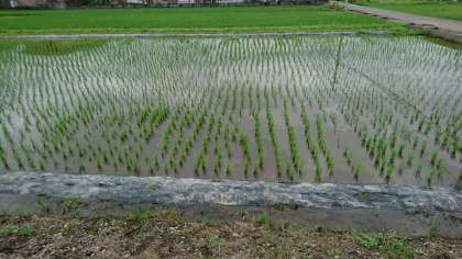 また、写真(下)は田んぼですが、生徒たちが手で植えた苗の方が機械で植えた苗よりもよく成長しているのがわかります。