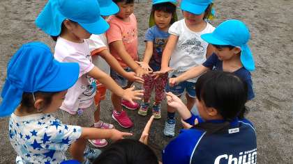 写真上:グーとパーで分かれましょ、をやっています。もうこのくらいになるとできるんですね。