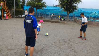 写真下:5歳児の子だそうですが、立派にボール遊びができています。