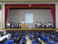 写真下:プールでは中学生の股下をくぐる遊びをしていました。こうしてだんだん水に慣れていくんでしょうね。
