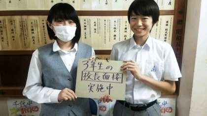 テストが昨日終わり、今日から3年生の「校長面接」が始まりました。3年生211名の一人ひとりとの面接なので、朝2人、昼休み2人、放課後4人というペースで実施しています。