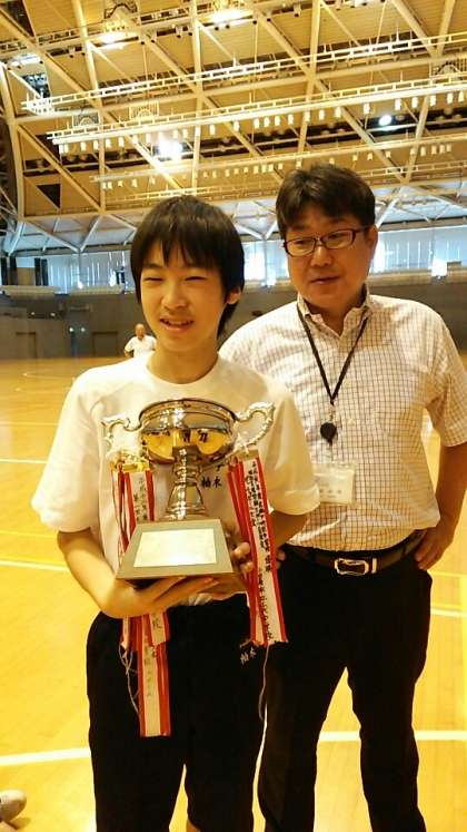 写真(中)は、昨年の優勝カップと私も一緒に…、。