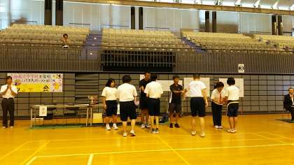写真(上)は、小田原アリーナに到着したところです。既にたくさんの学校が到着していました。