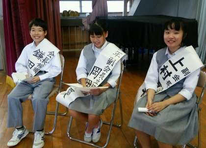 今日の5校時は、体育館で生徒会役員選挙立会演説会をおこないました。