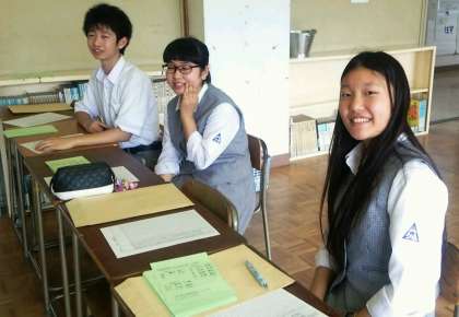 写真(上)は選挙管理委員です。このあと体育館から投票に来る3年生を待っている所です。