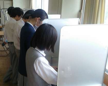 投票記載台も投票箱も小田原市の選挙管理委員会から借用してきた物を使いました。