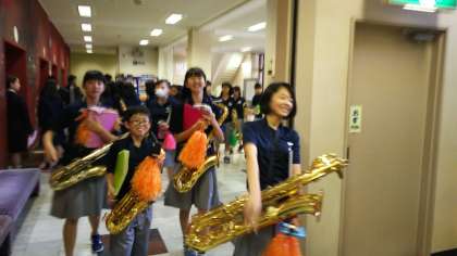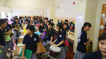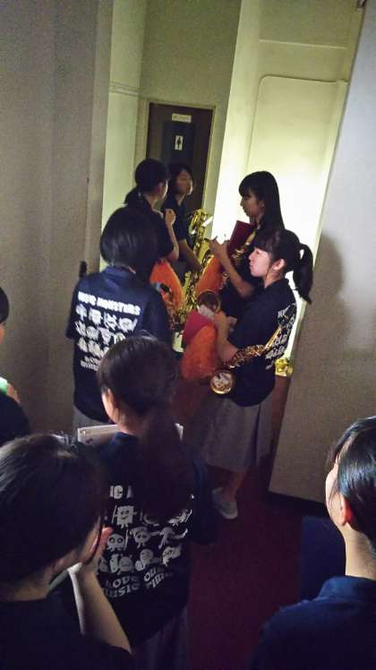写真(上)は、演奏のために楽屋へ向かうところです。