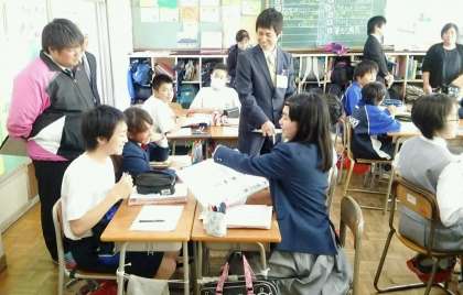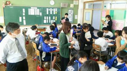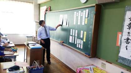 写真は、1年5組での松本先生の授業風景です。