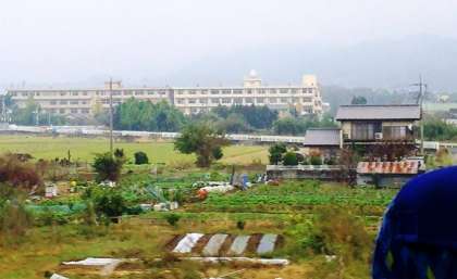 写真(下)は、小田原厚木道路からの千代中学校です。