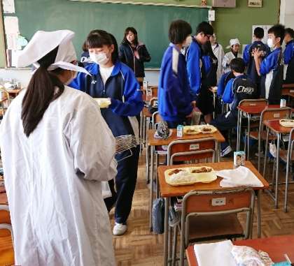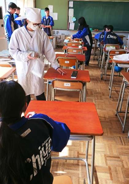 インフルエンザ対策で、4組も班になって食べることはせず、みんな前を向いて食べます。