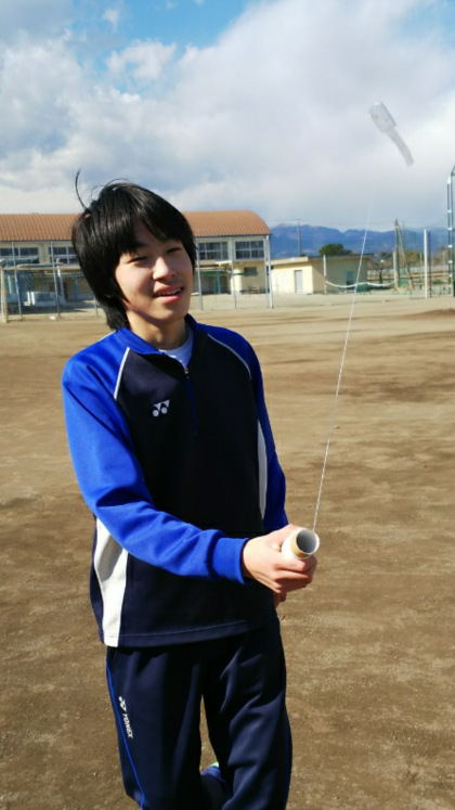 冬空はとても高く気持ちがいいです。ほどよい風が吹いていて、凧がぐんぐん空に吸い込まれるように上っていきます。