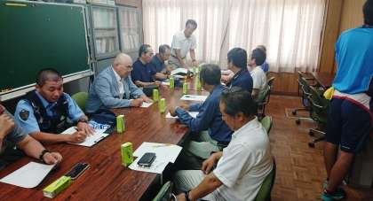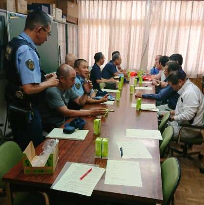 写真(上)(中)は、地域の駐在さん、青少年育成委員さん、補導員さん、保護司さん、育成会長さんたちとの打合せです。