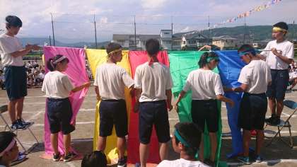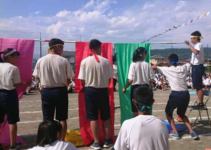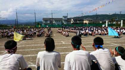 生徒会本部役員によるブロック優勝の発表です。工夫を凝らしています。