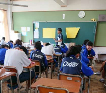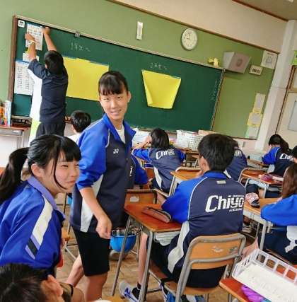 このあと、黄色ブロックで一緒になった1年生、2年生の各クラスにメッセージを書くようです。