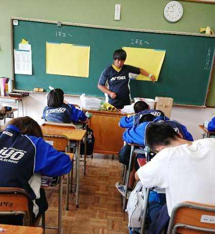 写真は、運動会担当で準備から当日、片付けまで大忙しで、自分のクラスのことにはじゅうぶん関われなかった3年3組の日渡雄太先生のクラスですが、反省用紙を見ると、生徒たちは、「じゅうぶんやりきった」様子がよく書かれていました。