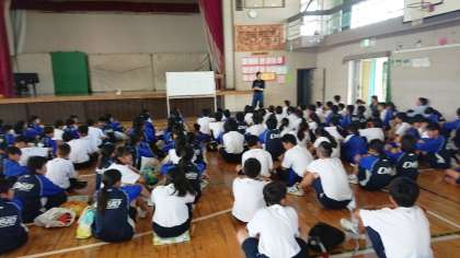 今日の、1年生の体育の授業でプール清掃を行いました。写真(上、中)は1、2組で清掃したあとです。プールの底のヘドロをよく取ってくれました。写真(下)は3,4,5組の生徒たちに、具体的にどう掃除するのか…を、保健体育科の伏見まり先生が説明しているところです。