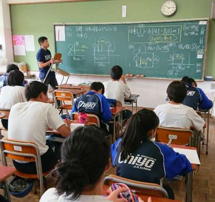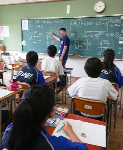 公開授業の隣の3年2組の理科の授業です。吉田健太郎先生の板書はとてもきれいです。