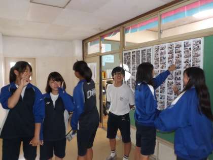 掲示されている写真の中から何枚かは卒業アルバムに載るのですが、やはり思い出の写真は手元に欲しいのでしょう、ほとんどの生徒が写真についている番号を申し込み用の封筒にたくさん書いています。スナップ写真が1枚100円、修学旅行のお小遣いはもう残っていないですよね。