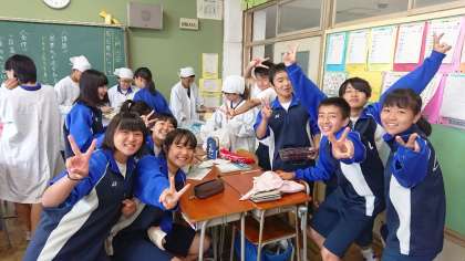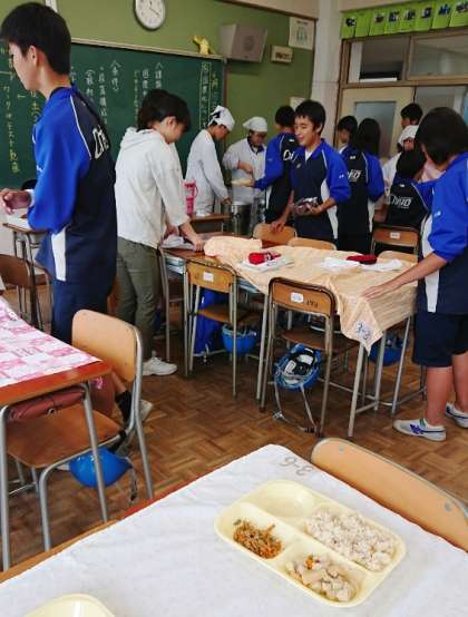 写真は、3年3組の準備風景です。私が教室に入ると「ちは」「こんちは」「ちわ〜す」など、たくさんの人が挨拶してくれました。写真もいい笑顔です!。