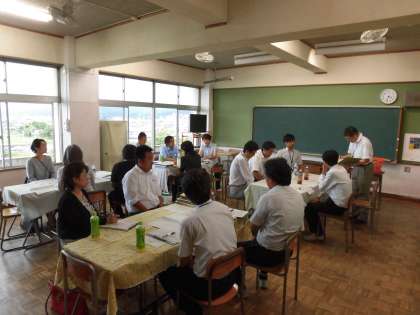授業後、参観に来られた小学校の先生方と懇談会を行いました。