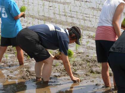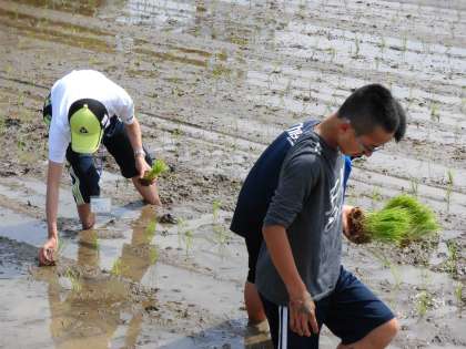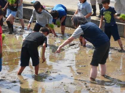 先生方も一緒に田んぼの中に入って、頑張っていました。明日、「腰が痛い・・・」なんてつぶやいている先生がいるかもしれませんね。