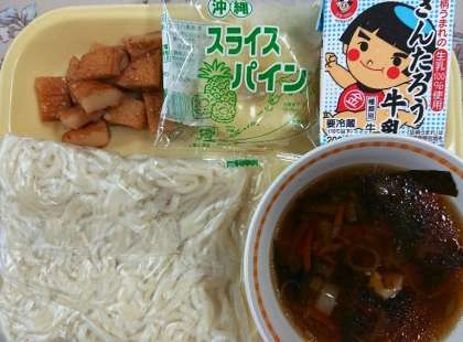 “デザート”は冷凍の沖縄県産のスライスパインでした。きっと教室では「パイン争奪ジャンケン」が繰り広げられたはずです。