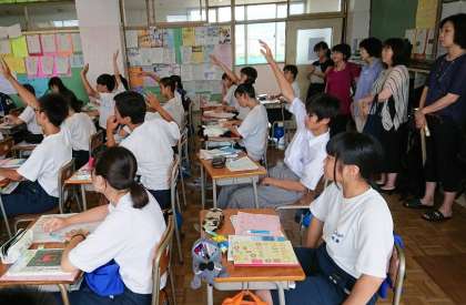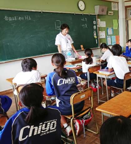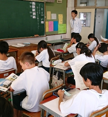 写真(上)(中)は2年3組の保健の授業風景です。伏見先生の問いかけに、よく手を挙げていました。