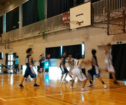 男子バスケ部は、73対32で一試合目突破しました。