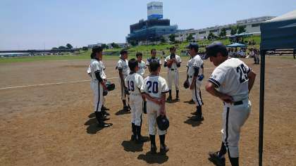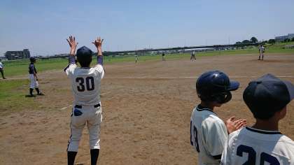 酒匂川スポーツ広場での野球の大会。初戦の相手は城北中です。2点をリードしても一番声の大きいのは加藤太一先生でした。
