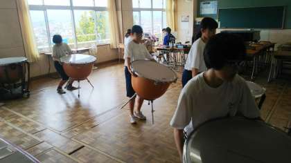 7月24日(火)吹奏楽部 パーカッション搬入の練習