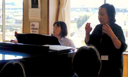 今日は、合唱ボランティアの大輪かづえさんが来てくださり、合唱指導をしてくださいました。