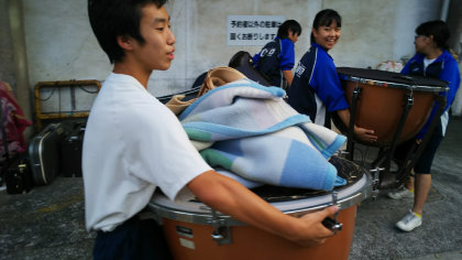 市民会館へ到着すると、既に、文化活動実行委員のメンバーが、楽器降ろしをしてくれていました。