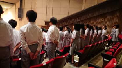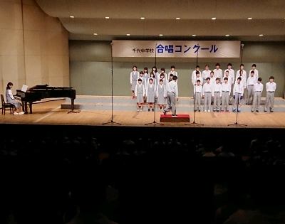 写真(上)は、2年全体合唱、(中)は2年4組、(下)は2年5組です。