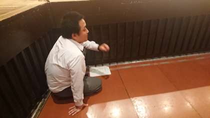 写真(上)は、閉会の言葉の倉世古さん、(中)(下)はエンドロールと文化活動発表会をおこなうにあたり、中心で動いた美本大輔先生です。