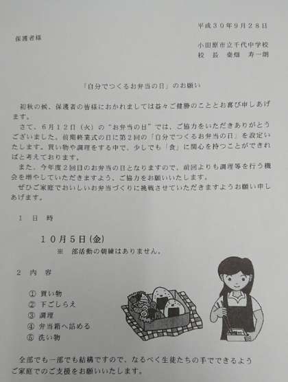 すでにお知らせしたとおり、明日は『自分で作るお弁当の日』です。