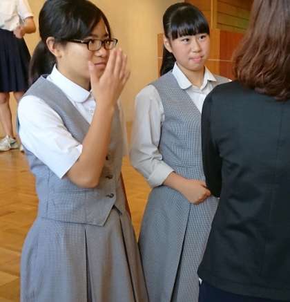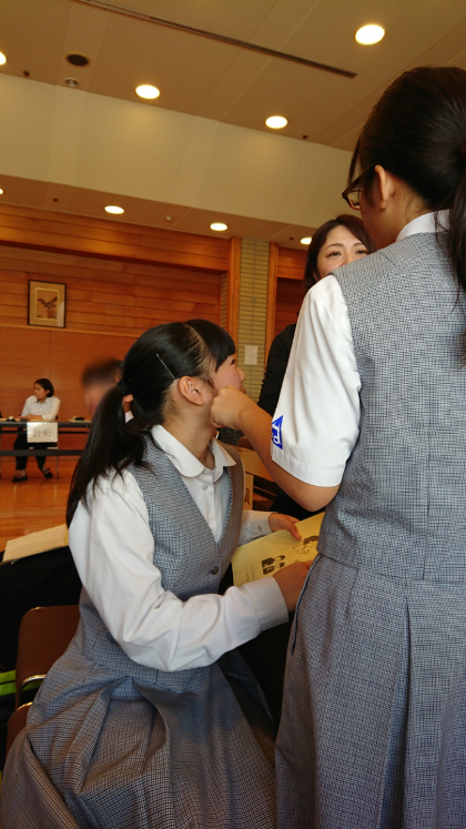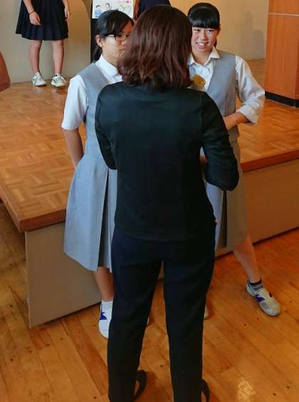 発表が終わり、英語科の山田ななえ先生とほっとしているところです。