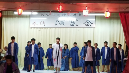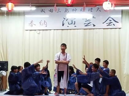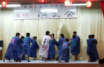 成田三島神社の祭典で、2年生有志(野球部を中心)で『ソーラン節』を踊りました。夜にも関わらず参加してくれた生徒のみなさん、見に来てくださった保護者のみなさん、ありがとうございました。