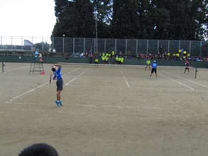 写真は、予選リーグの酒匂中戦の様子です。ほぼ互角の戦いでしたが、粘り強く練習してきたことをプレーの中で発揮していました。何とか競り勝つことができ予選を突破し、決勝トーナメントに進出しました。