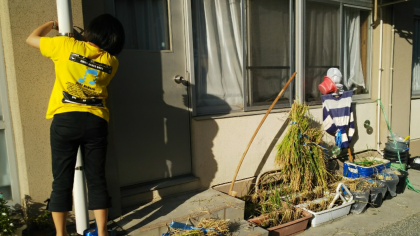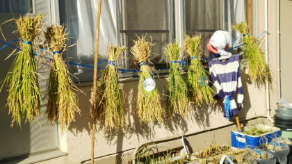 校長室前の稲も水が抜かれ、いい具合に乾燥してきました。