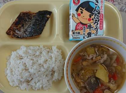 後期最初となる今日の給食のメニューは、鰆の香味焼き、さつま汁、麦入りご飯、牛乳です。