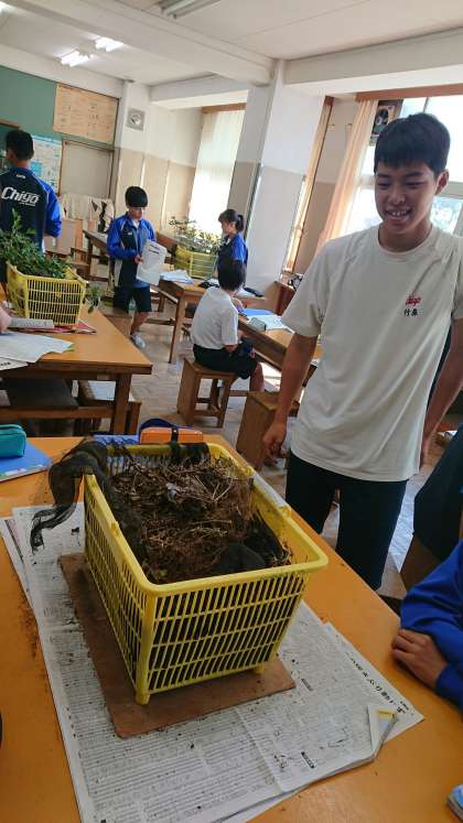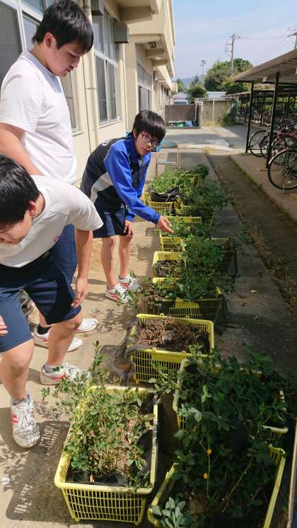 枝豆を育てています。残念ながら枯れてしまった班も。